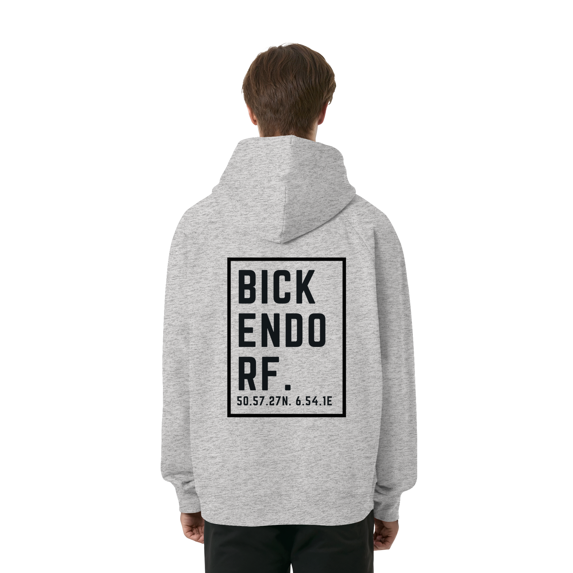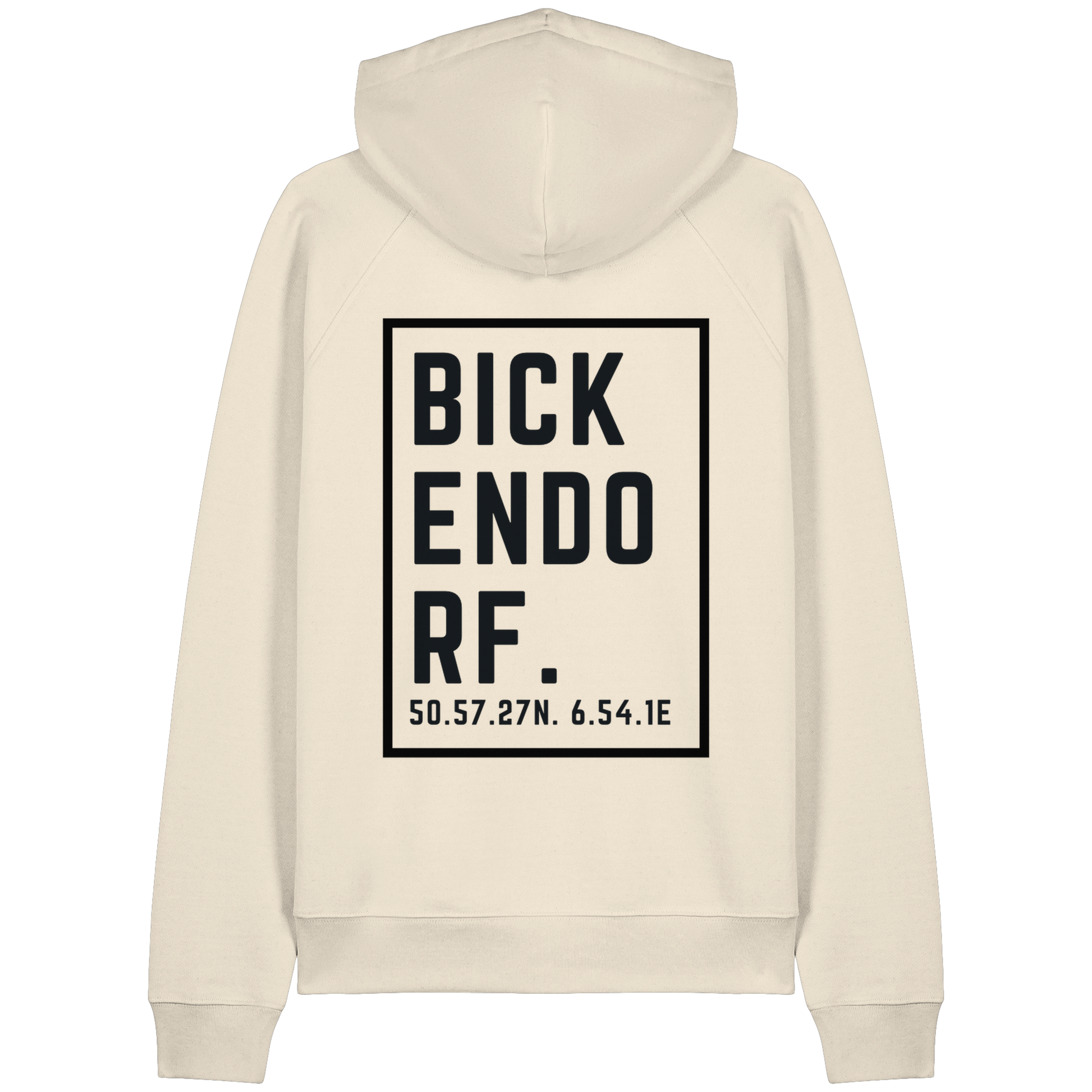 Bickendorf Koordinaten (großer Druck auf dem Rücken) - Organic Raglan Hoodie