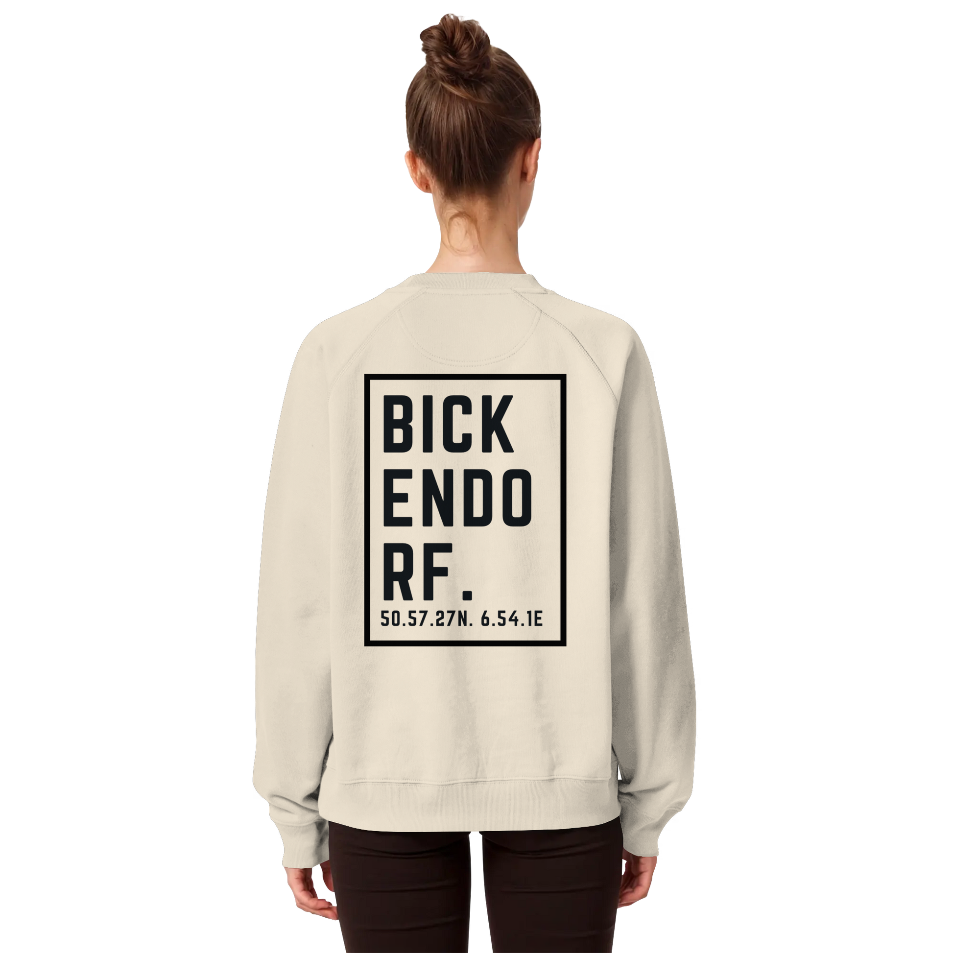 Bickendorf Koordinaten (großer Druck auf dem Rücken) - Organic Raglan Sweatshirt