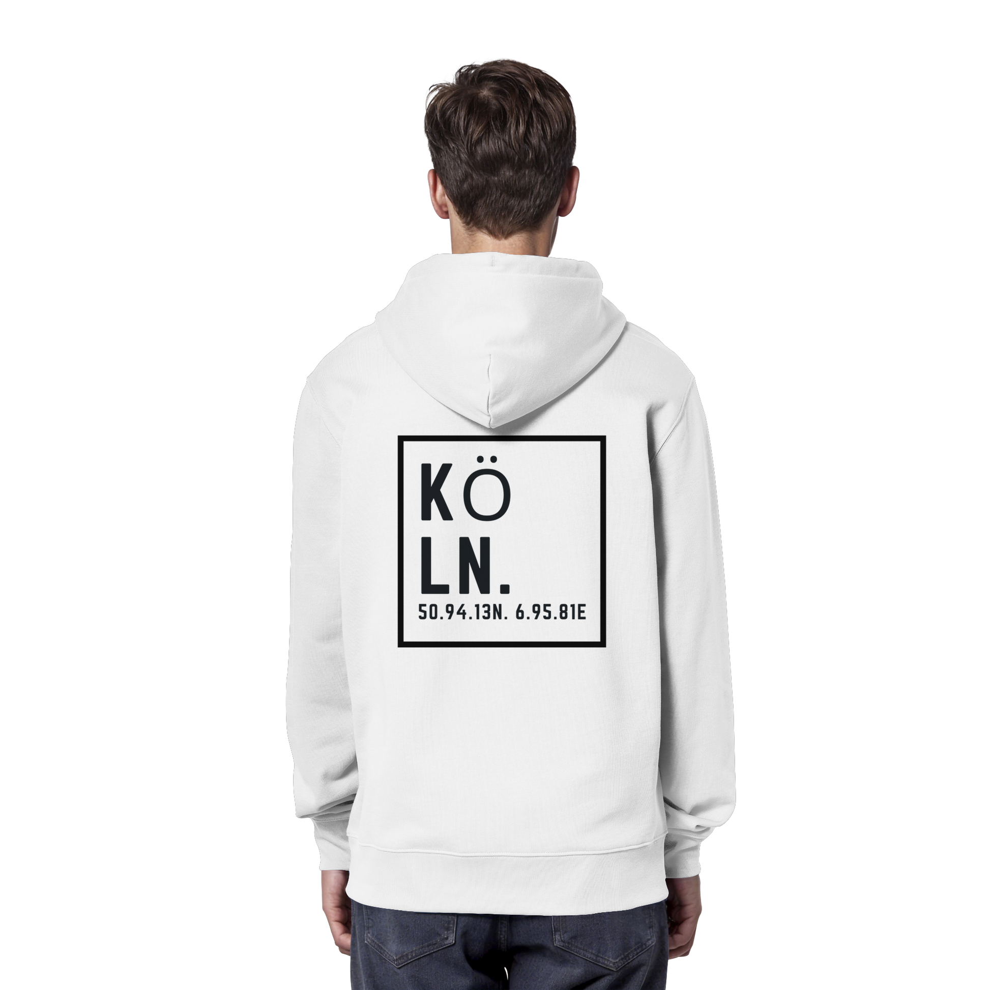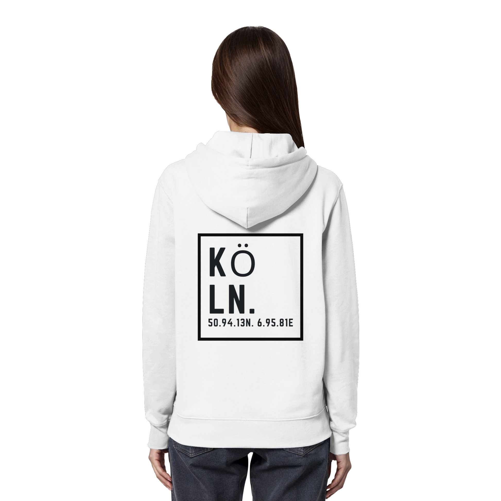 Köln Koordinaten (großer Druck auf dem Rücken) - Organic Hoodie