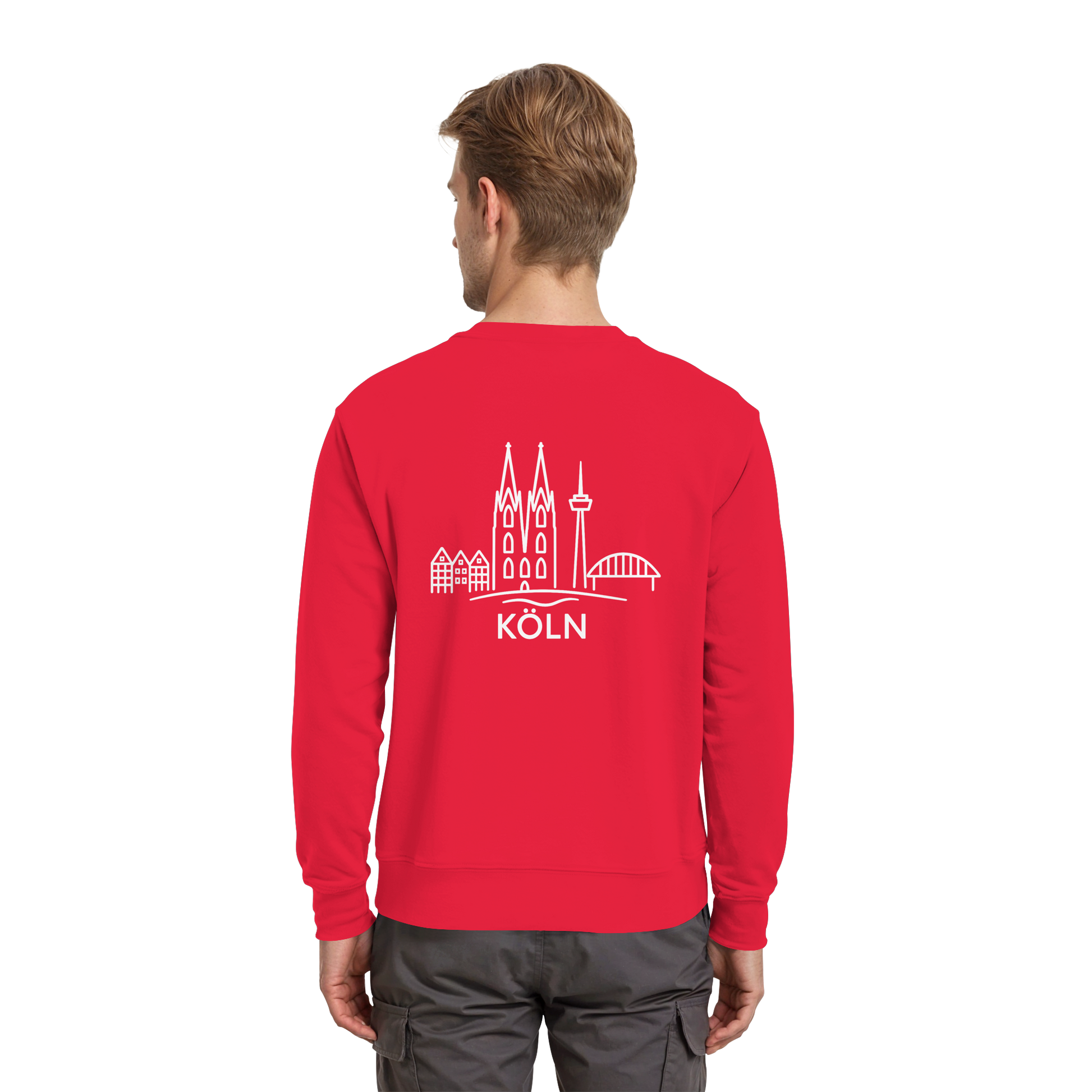 Mit dem „Skyline Köln“ Design trägst du dein Lebensgefühl auf dem Rücken. Der großflächige weiße Druck zeigt die ikonische Skyline mit Dom, Brücke und Colonius – klar, modern und trotzdem voller kölscher Identität.