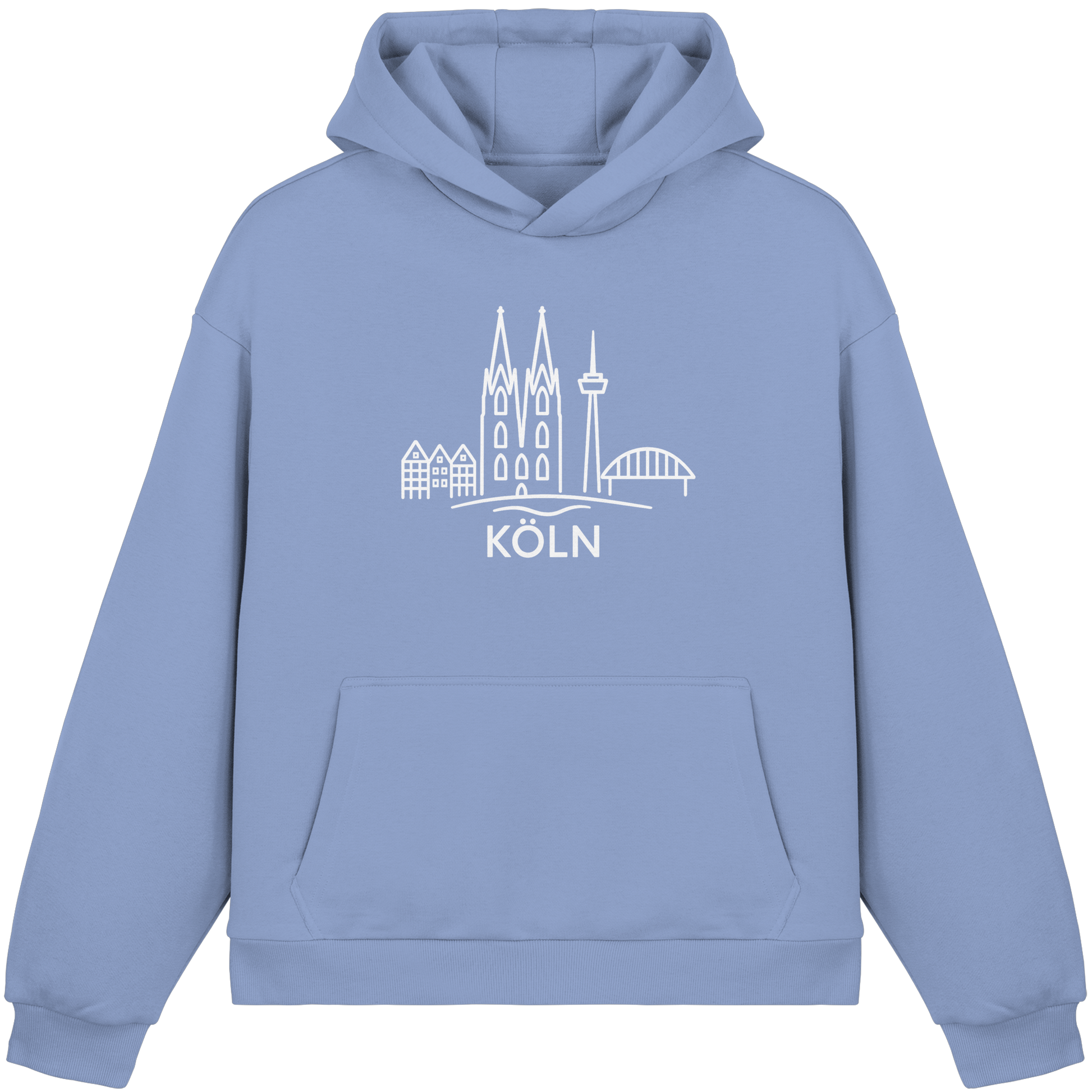 Köln Skyline (großer Druck auf der Brust) - Fluffy Boxcut Hoodie