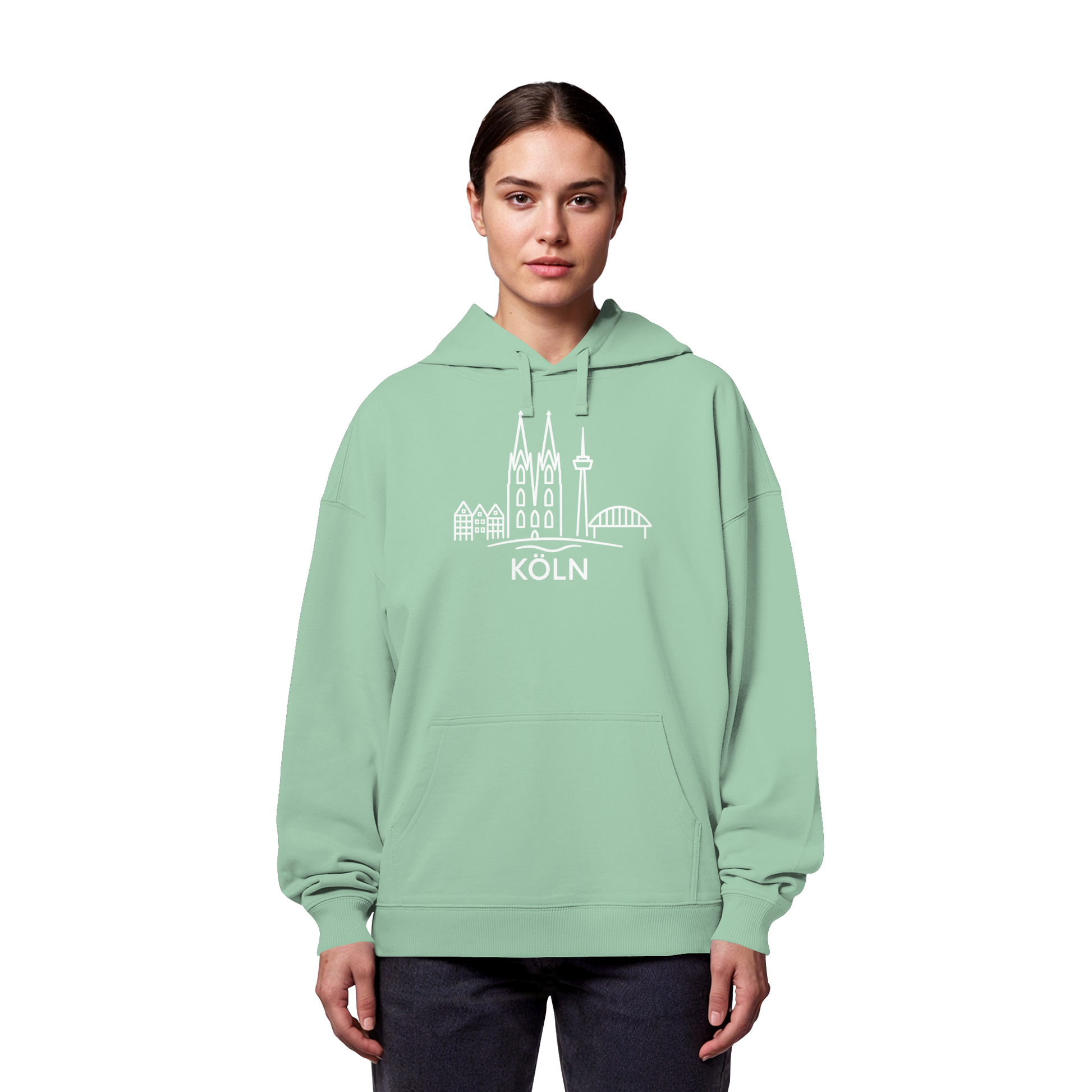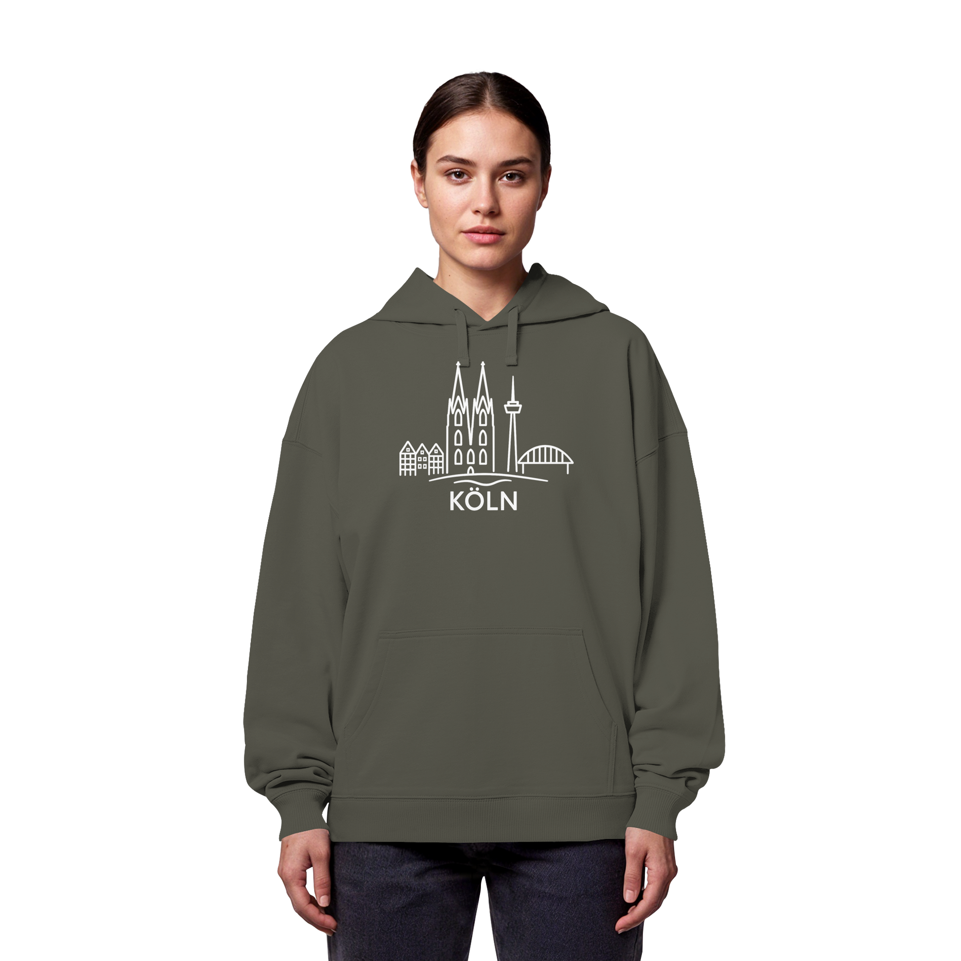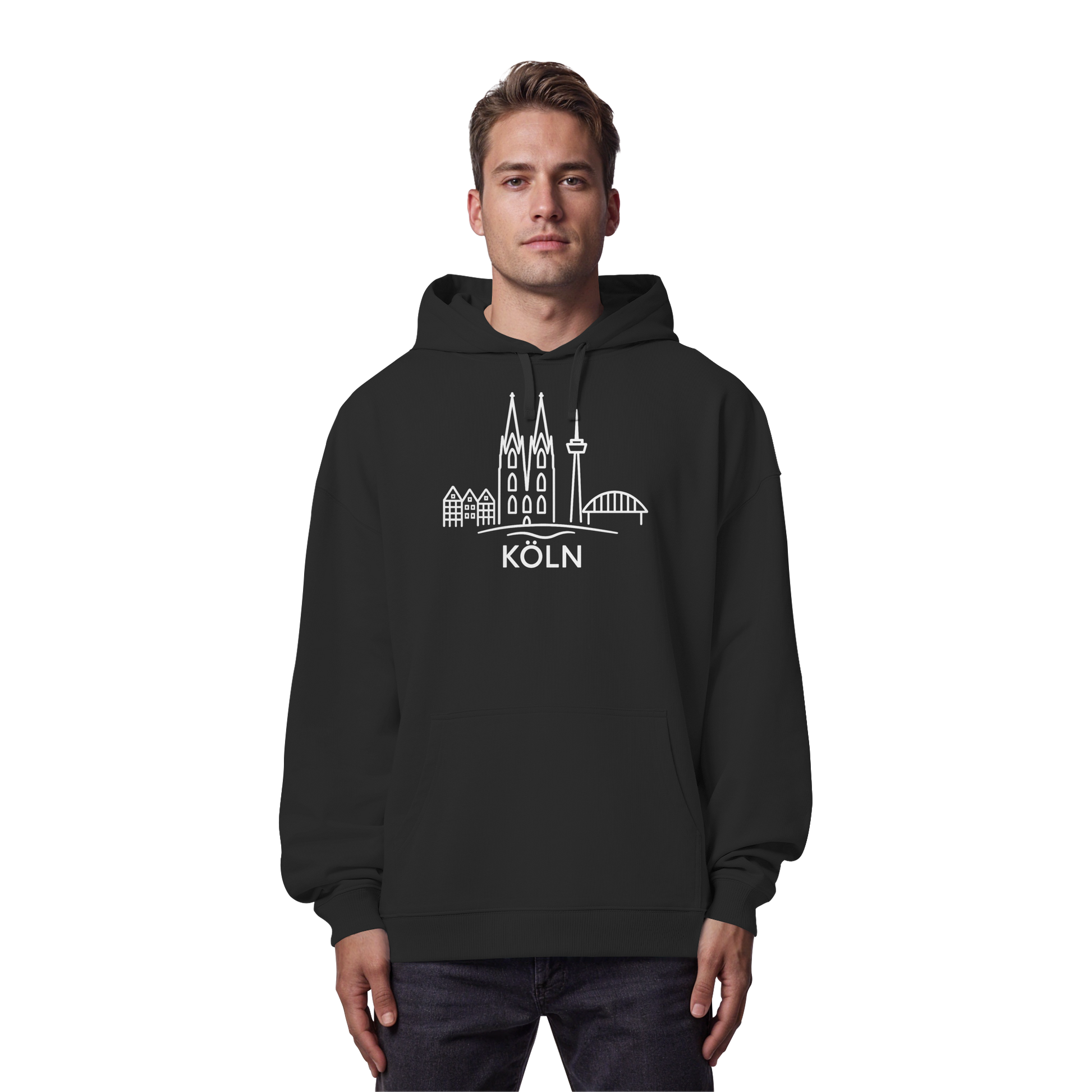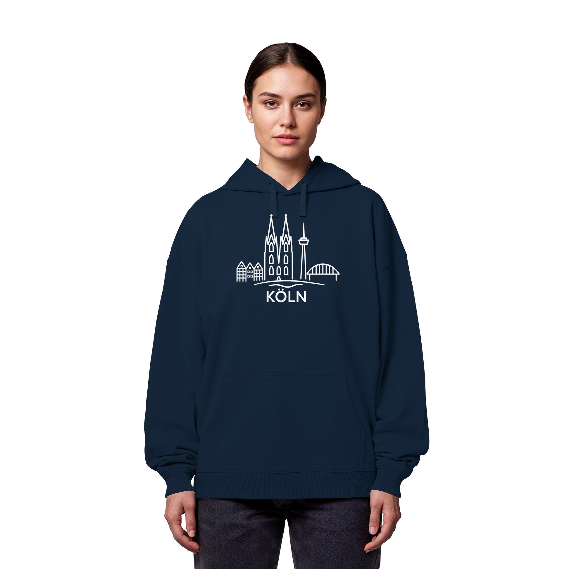 Köln Skyline (großer Druck auf der Brust) - Organic Oversize Hoodie