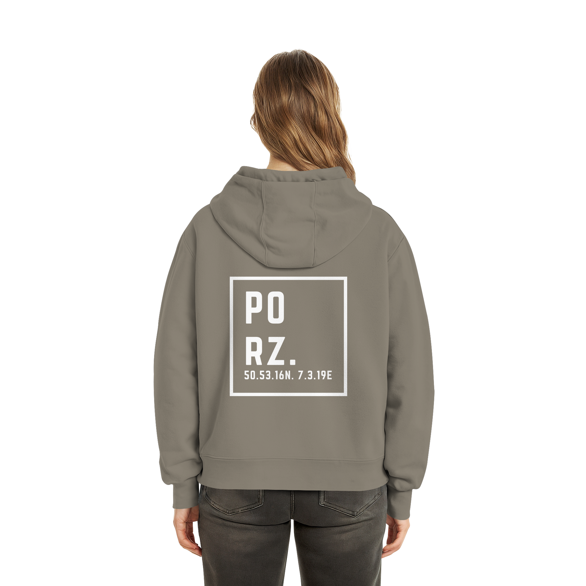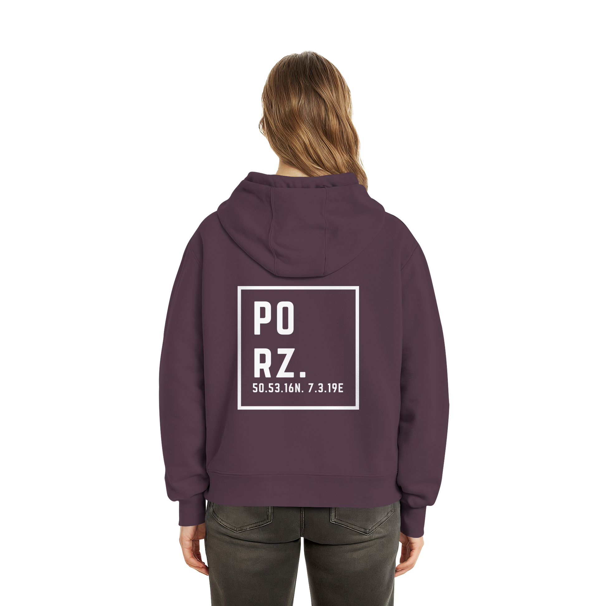 Porz Koordinaten (großer Druck Rücken) - Fluffy Boxcut Hoodie