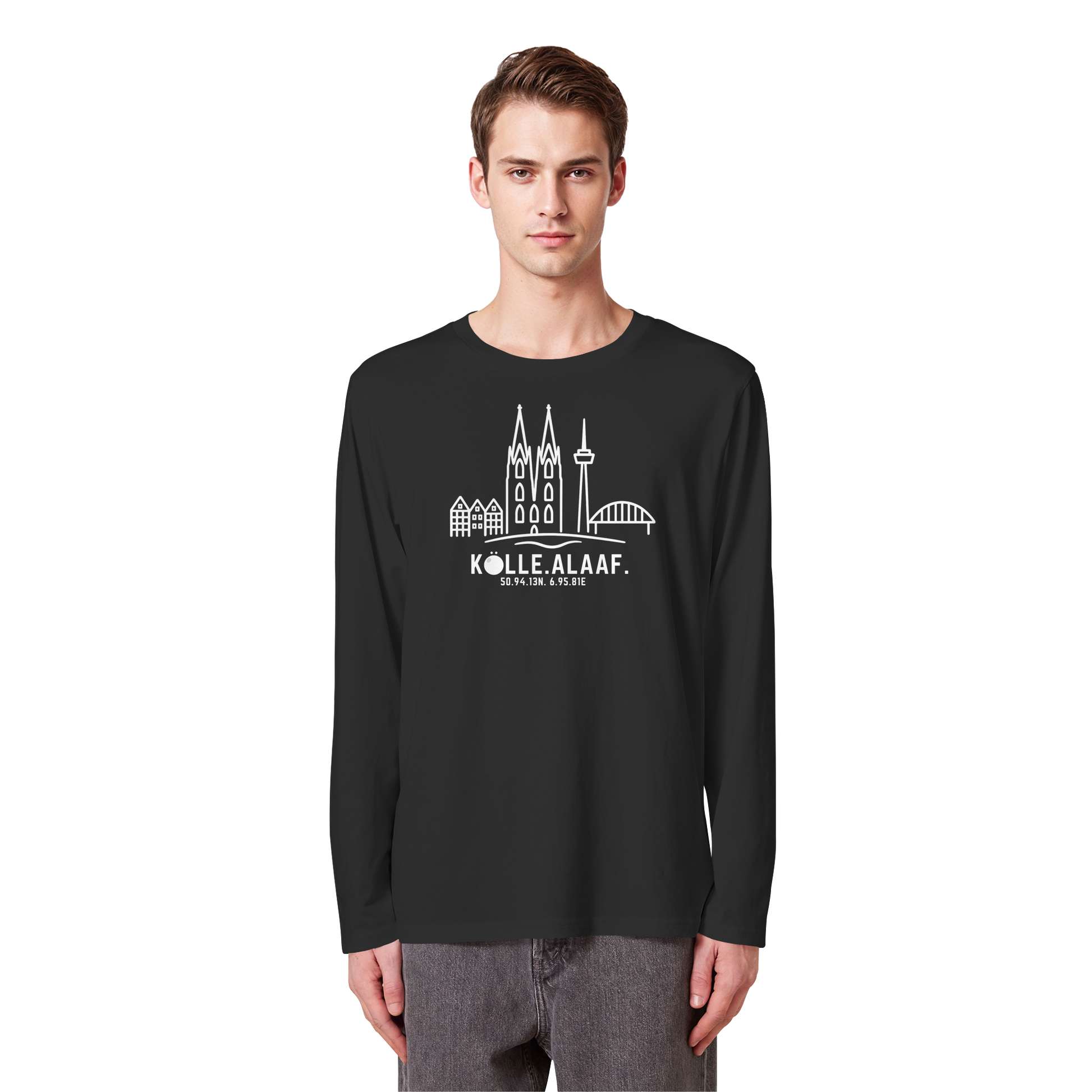 Die Skyline steht für Köln als Ganzes, die Koordinaten verorten diesen besonderen Ort und „Alaaf.“ bringt das Gefühl auf den Punkt, das jede Jeckin und jeder Jeck sofort versteht.