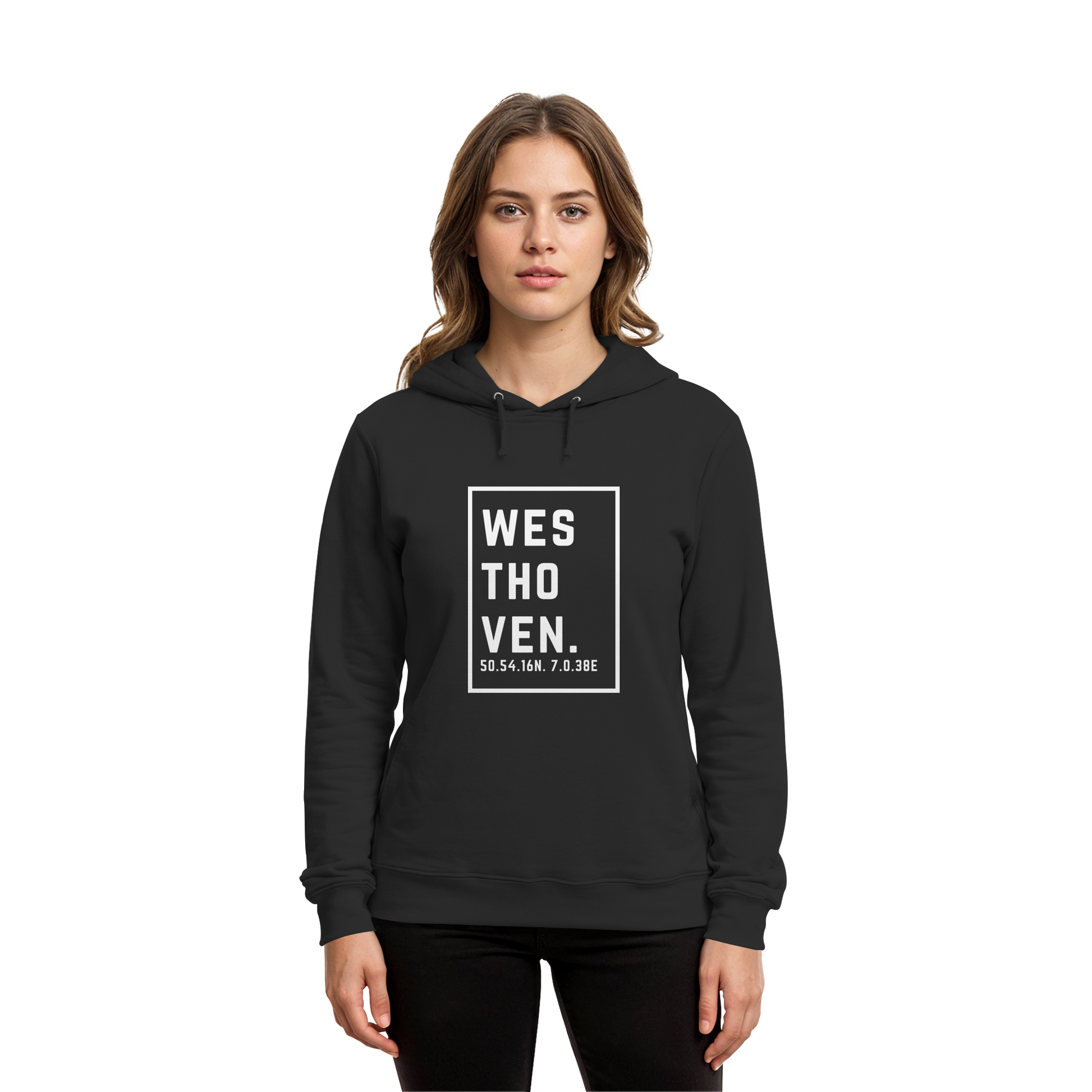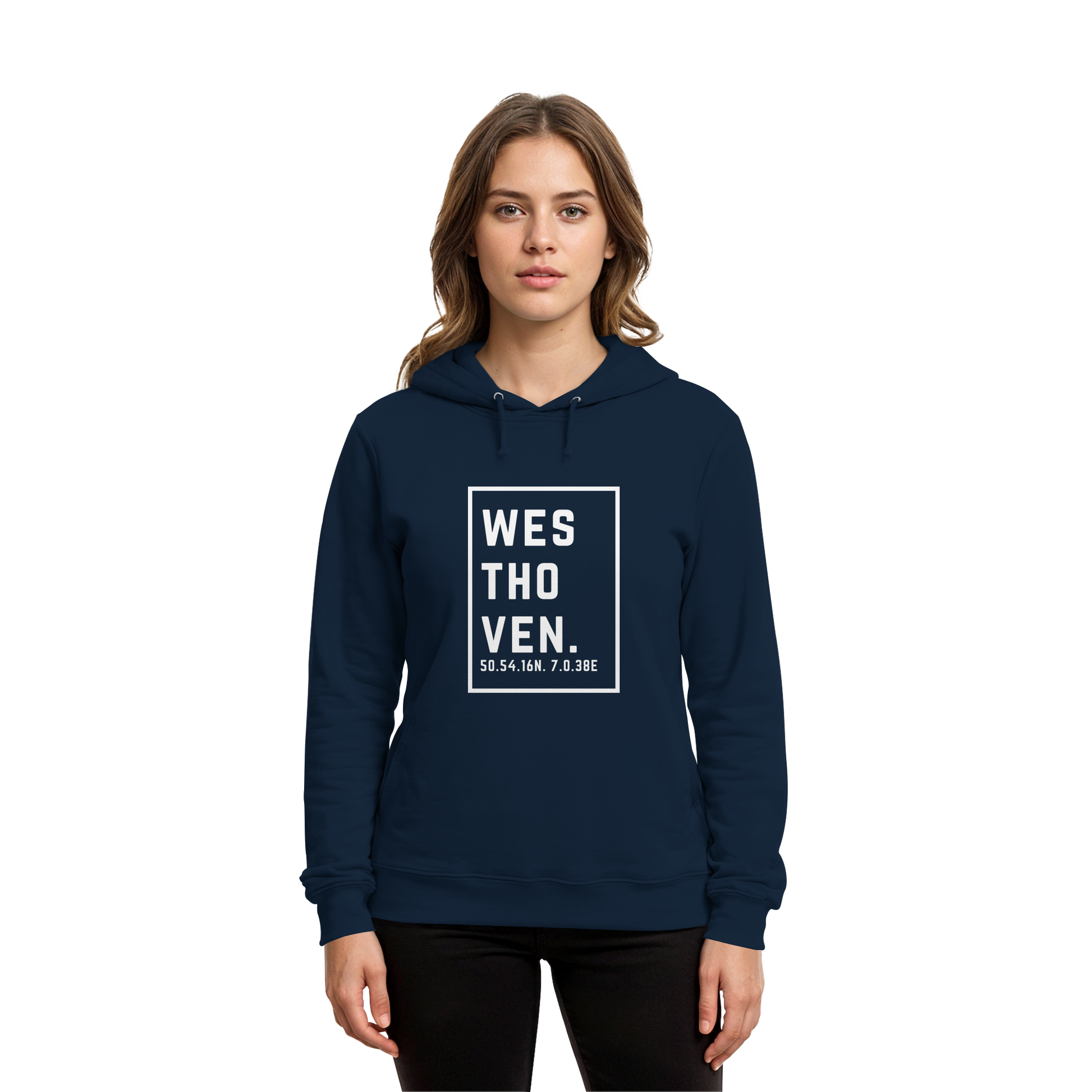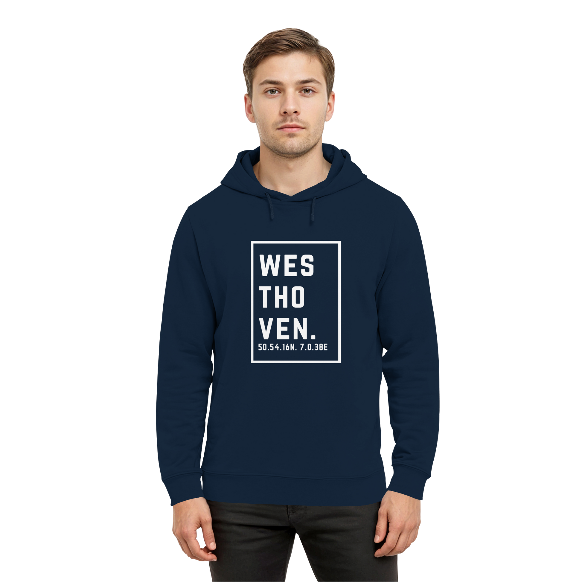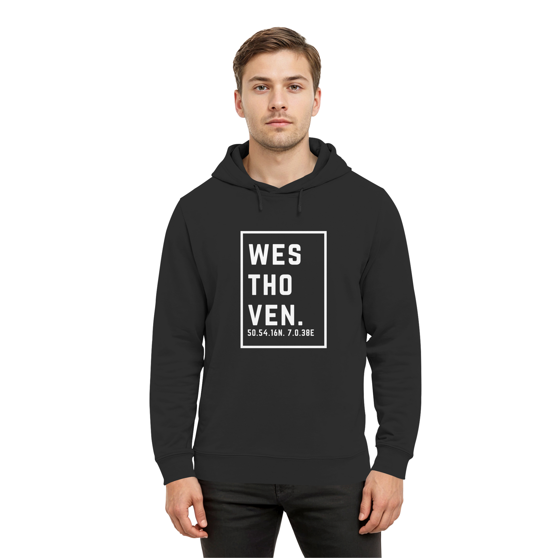 Westhoven Koordinaten (großer Druck auf der Brust) - Organic Hoodie B&C